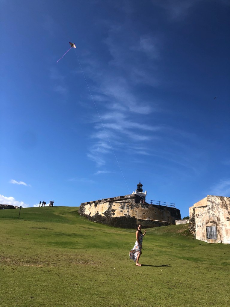 De viaje con mi familia en una de las islas mas bonitas de este mundo (bueno de todas las que conozco, que ni son tantas jajajajaja) un día fuimos a un hermoso lugar junto a un fuerte a volar cometas; tenía muchísimos años no volaba una cometa. De pequeña era una actividad que hacíamos cada que íbamos a la playa, y el volver a vivir este bonito pasatiempo con mis hijos y mi compañero de aventuras (el marido) me recordó muchísimas cosas…. lo fácil que es despejar mente de cualquier pensamiento, lo hermoso que es sentir el viento en tu cara, tu cabello, en el lazo que mantiene a la cometa unida a tus manos; la alegría de sonreír solo por ver como tu cometa emprende su vuelo y cada vez se eleva más y más en el cielo, alcanzando una altura donde su vuelo es estable y ya no hay que luchar contra los vientos que lo movían sin control de un lado a otro o incluso cuando dejaba de soplar un poco el viento y empezaba a perder altura; escuchando la emoción en la voz de tus hijos al ver como estábamos logrando el papalote volara, las risas de felicidad de sentir como logro propio el que cada cometa se mantuviera en el cielo volando…. y ahí nos quedábamos todos con una sonrisa de oreja a oreja solo contemplando a esos papalotes volando libres en el cielo, sin decirnos nada solo admirando su vuelo….